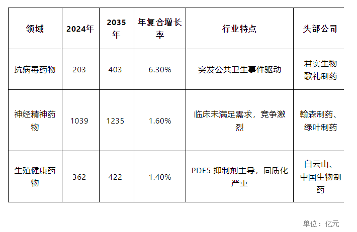 而旺山旺水布局的抗病毒、神经精神、生殖健康3大领域只有抗病毒药物的未来增长空间相对较大,其余两大领域的竞争比较激烈。