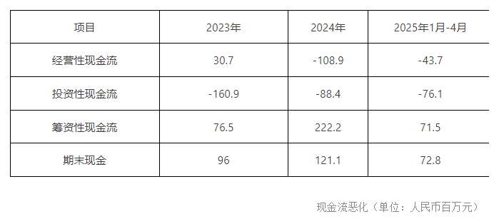 此外, 旺山旺水现金流出现持续恶化,账面资金仅7283.3万元。