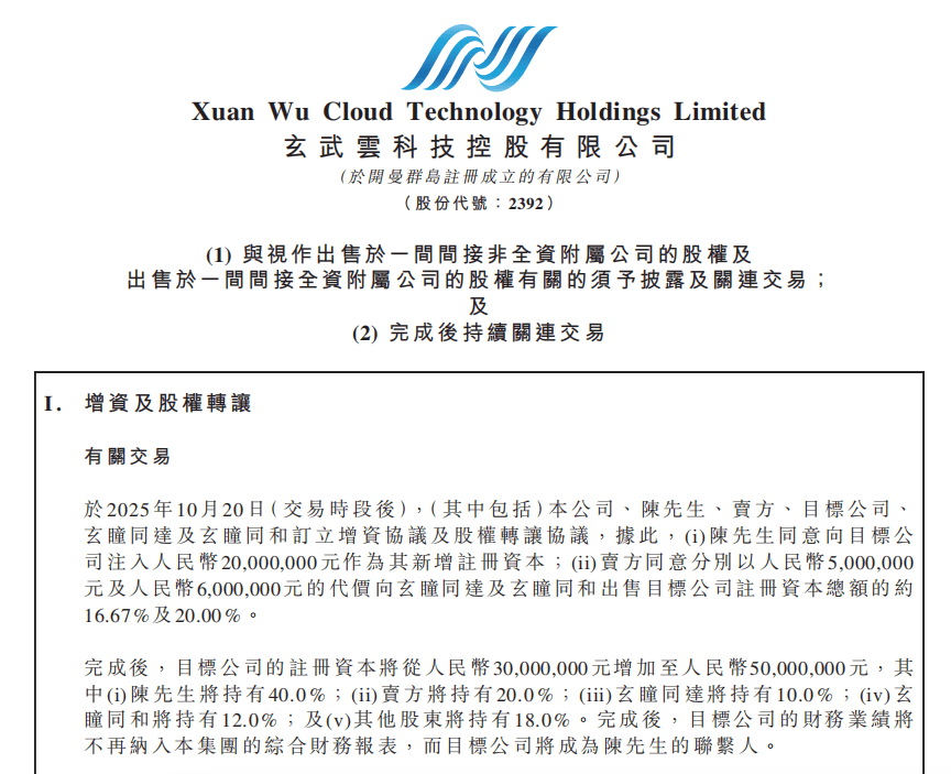 日前,国内知名AI+SaaS厂商玄武云(02392.HK)发布了两则公告:公司拟通过转让20%股权引入战略投资人廉健。同时,公司现任董事会主席陈永辉将以增资方式,将原上市主体的销售云业务转为独立运营。