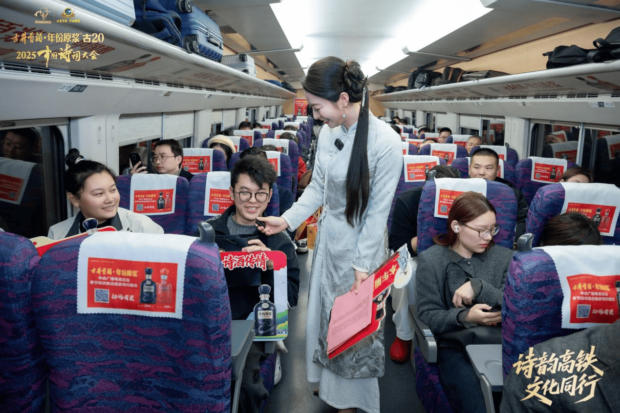 当350km/h的中国高铁邂逅千年诗词,当一杯醇香美酒唤醒心底的情怀,一场流动的雅集温暖启程。在古井贡酒·年份原浆古20《中国诗词大会》即将启幕之际,一场别开生面的“列车上的诗词大会”,让奔赴远方的旅途,化作一场穿越古今的诗意奔赴。作为中国老八大名酒之一,古井贡酒(000596.SZ)把诗词的雅趣带上列车,让乘客诗意大发!