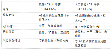 针对“AI应用”方向,单一ETF难以完全覆盖产业链,建议采用“软件ETF+人工智能主题ETF”的双核配置: