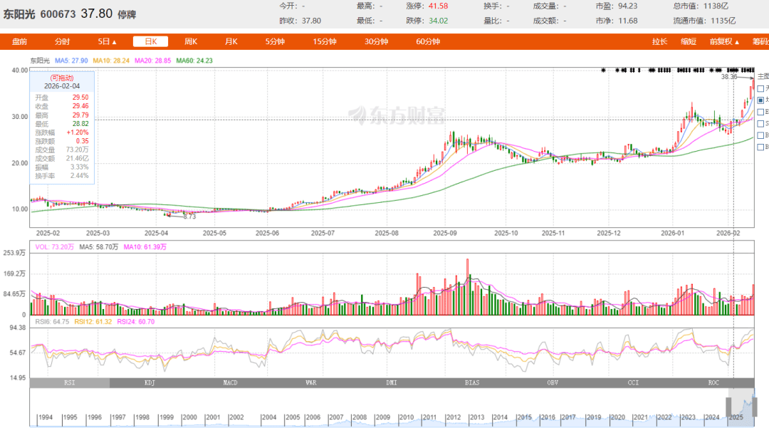 2025年内,东阳光股价最高涨幅超200%;而2026年2月至今,东阳光股价累计涨幅又超46%。截至东阳光停牌,其总市值已高达1138亿元。