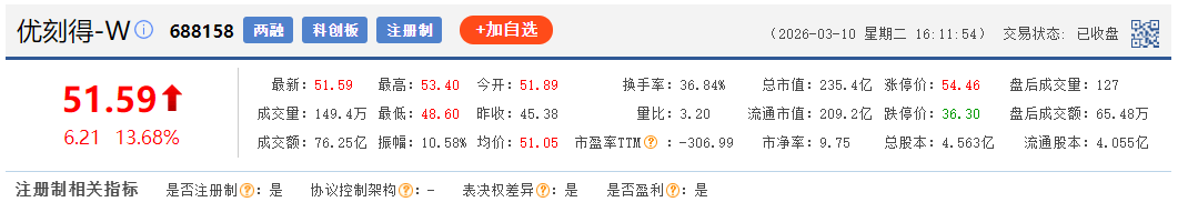 而资本市场上,最被关注的“龙虾概念股”优刻得-W(688158.SH)自3月4日起连续5个交易日上涨,3月6日、3月9日和3月10日这3个交易日累计涨幅超42.55%,总市值突破200亿元。